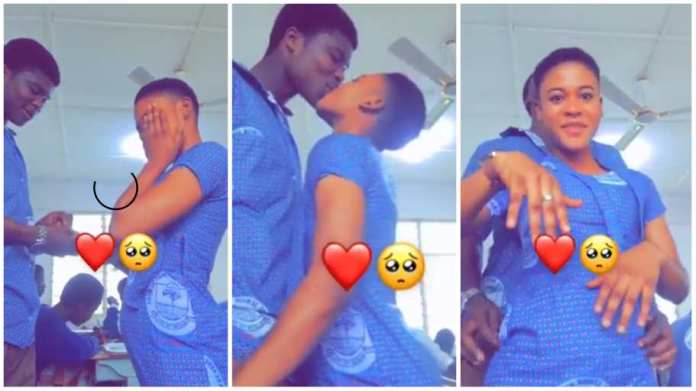 The video captures the young boy believed to be in his teenage proposing to his girlfriend during class hours.