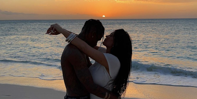 The makeup mogul, 24, and reality star shared romantic snapshots that showed herself and the rapper, 31, enjoying a seaside stroll, with her arms around the Sicko Mode hitmaker’s neck while he held on tightly to her tiny waist.