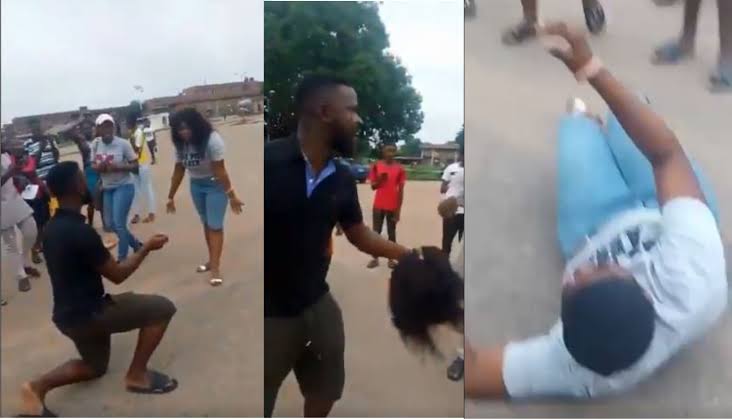 After she said no to his marriage proposal, the man gave his girlfriend the beating of her life, as seen in the video below, which has since gone viral.