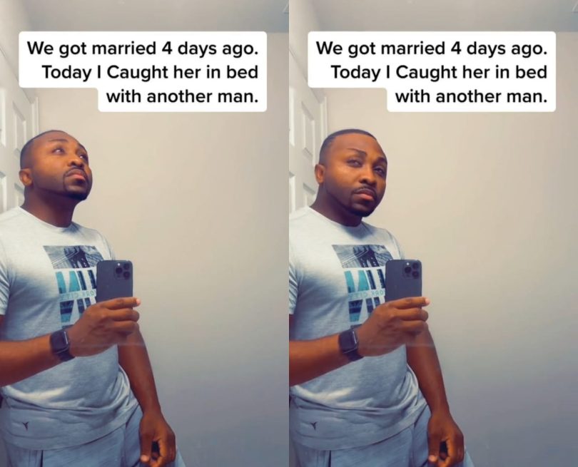 A Nigerian man simply identified as Ayo has said that he caught his wife in bed with another man four days after their wedding.