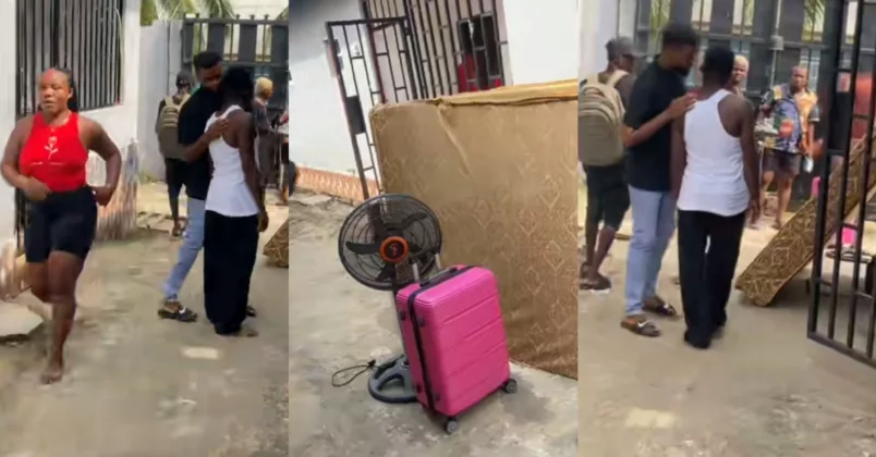 The viral video shows the lady’s belongings getting packed outside amid the chaos while neighbours rushed to the scene.