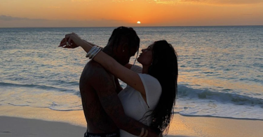 Furthermore, to add some spice to the picture placed her hand on her baby bump with a smile on her face as she stood on a brown backdrop.