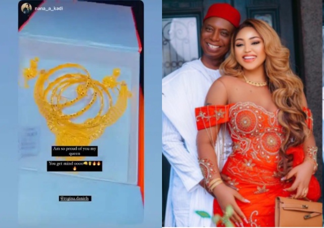Regina Daniels, a popular Nollywood actress, flaunts her freshly purchased jewelry, which is said to worth ten million naira.