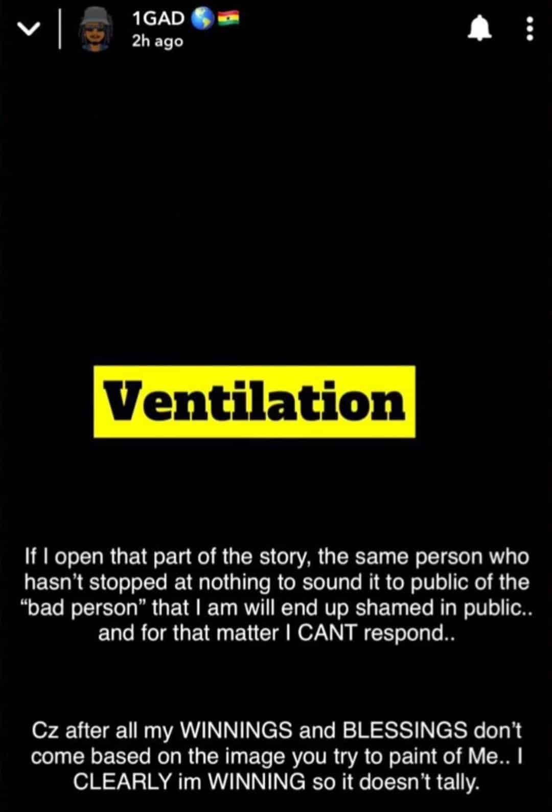 Stonebwoy has dropped a coded message for A Plus on his Snapchat stories titled “Ventilation”.
