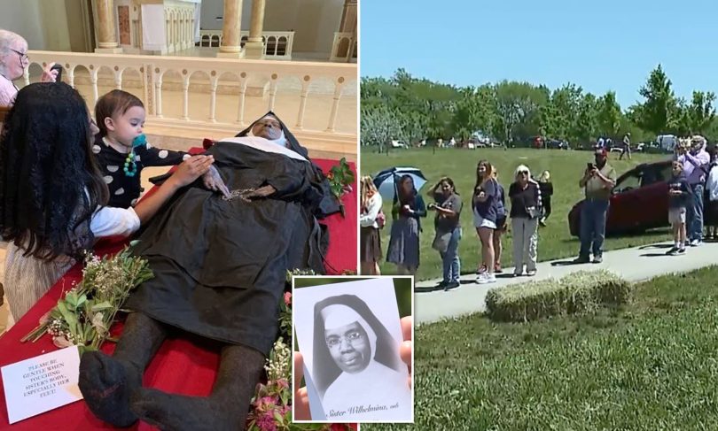 Faithful Catholics have been pictured and filmed in a long queue rushing to Gower – about 40 miles north of Kansas City – to see the unblemished body of sister Wilhelmina Lancaster, who died in May 2019 at the age of 95, with some calling it a miraculous sign of sainthood.