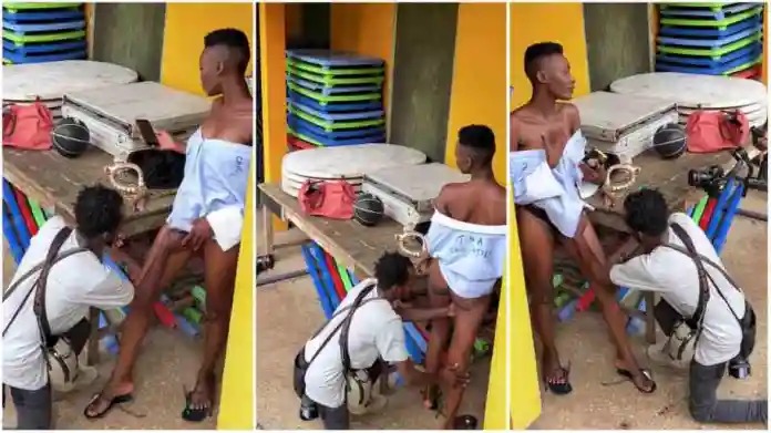 On Wednesday, May 18, one of the photographers was captured on location with DSG model Lyza Appiah, who had her body smeared with oil by the gentleman who seemed focused on the act.