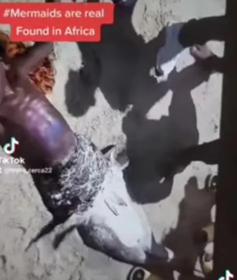 In the video, the mermaid was seen lying at the beach with her shocking form.