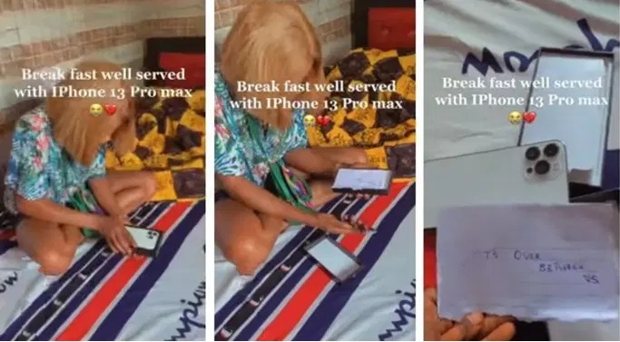 The lady herself informed her friends on Twitter how he got an iPhone 13 Pro Max gift from her boyfriend who severed ties from their romantic association.