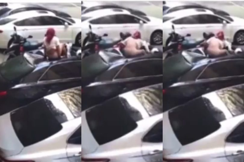In the video, the lady seemed to have escaped from the wrath of her lover’s wife through the window and unfortunately landed her waist on her car.